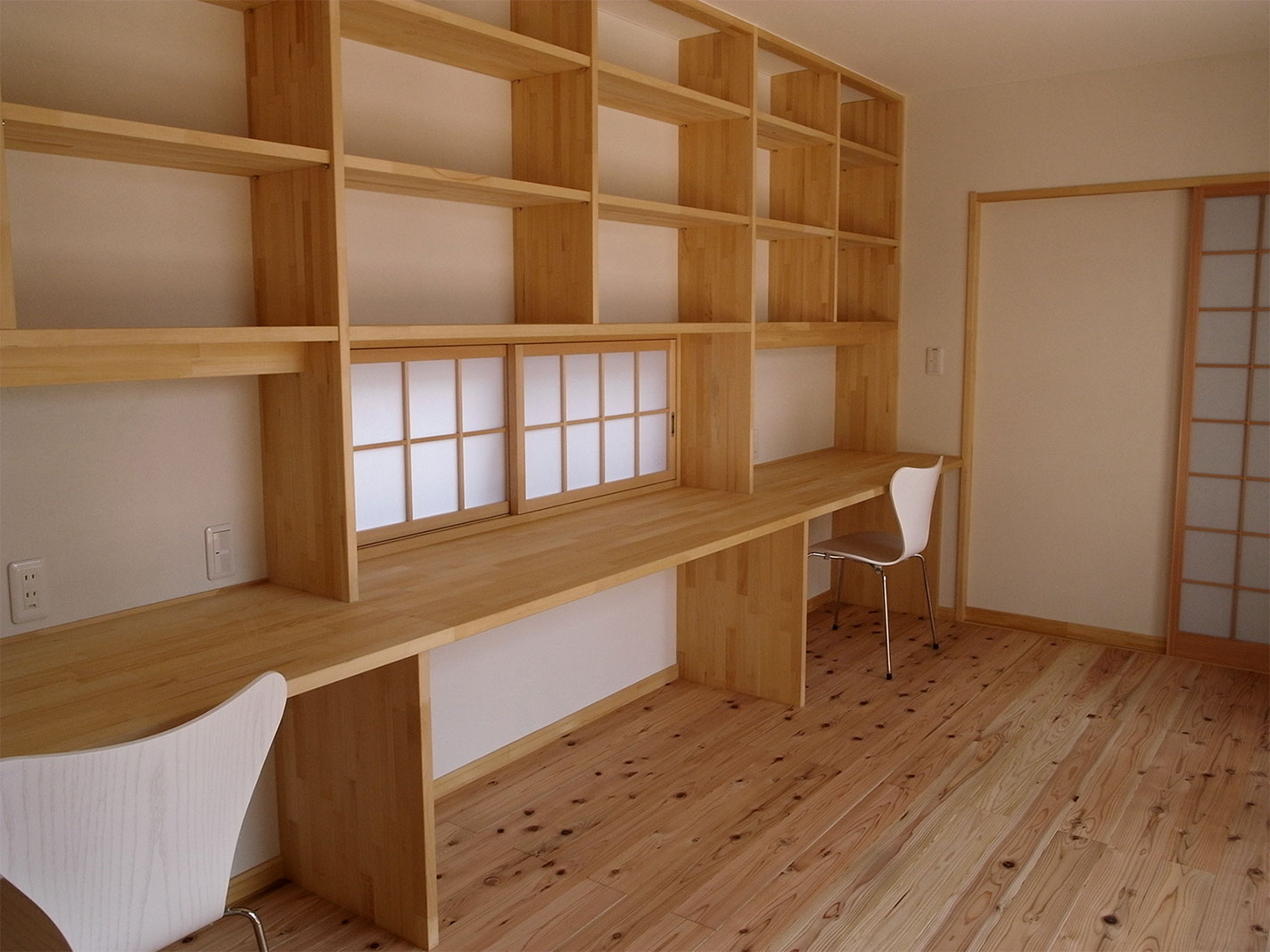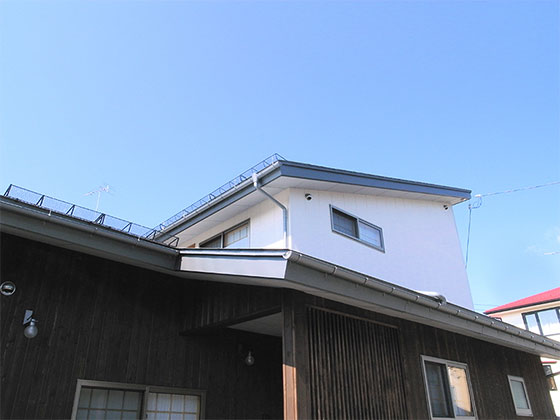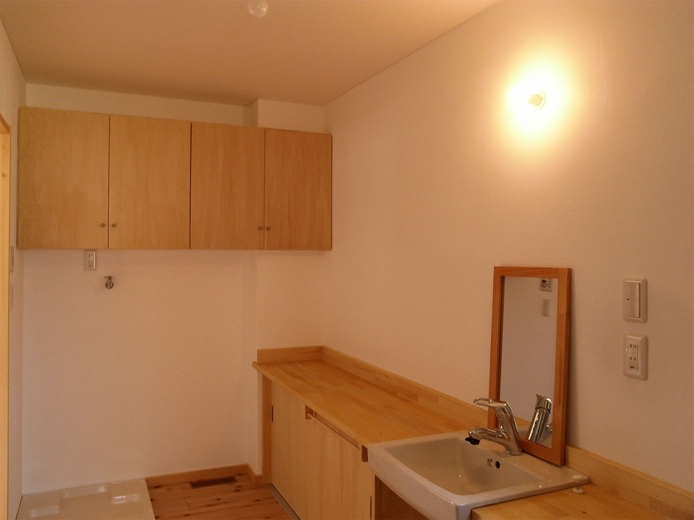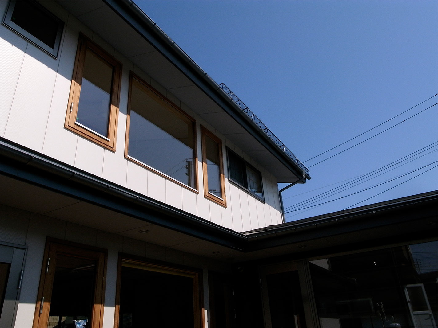 施工事例この家は盛岡市郊外の宅地開発により分譲されたところに建つ。ふた区画分というゆとりのある敷地をいかし屋根並みのある家、庭スペースのある家といったことを基本に計画した。
